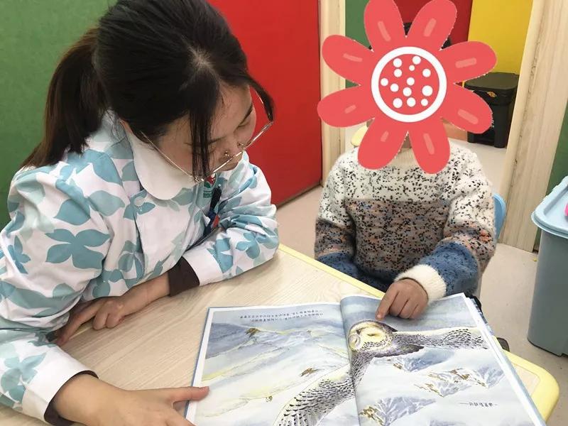 在学习的过程中,梦梦老师一边朗读一边进行提出问题,比如“北极熊在冰上走为什么不会打滑”“这些是什么动物”等。